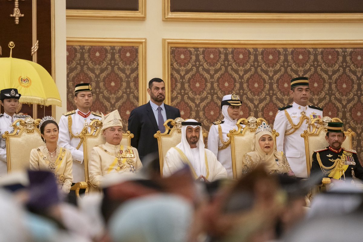 حضر صاحب السمو الشيخ محمد بن زايد آل نهيان ولي عهد أبوظبي نائب القائد الأعلى للقوات المسلحة اليوم مراسم تنصيب عبدالله رعاية الدين المصطفى بالله شاه ملكا لماليزيا.